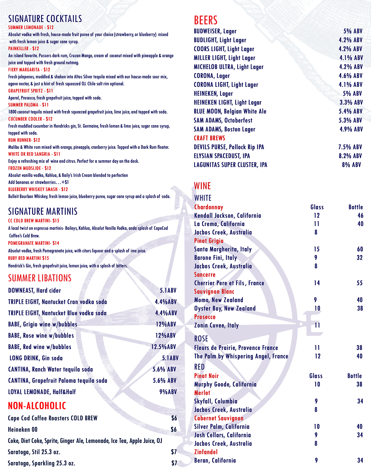 [/vc_column_text][/toggle][toggle color=”Default” title=”Beers + Drinks + Wine”][vc_column_text]